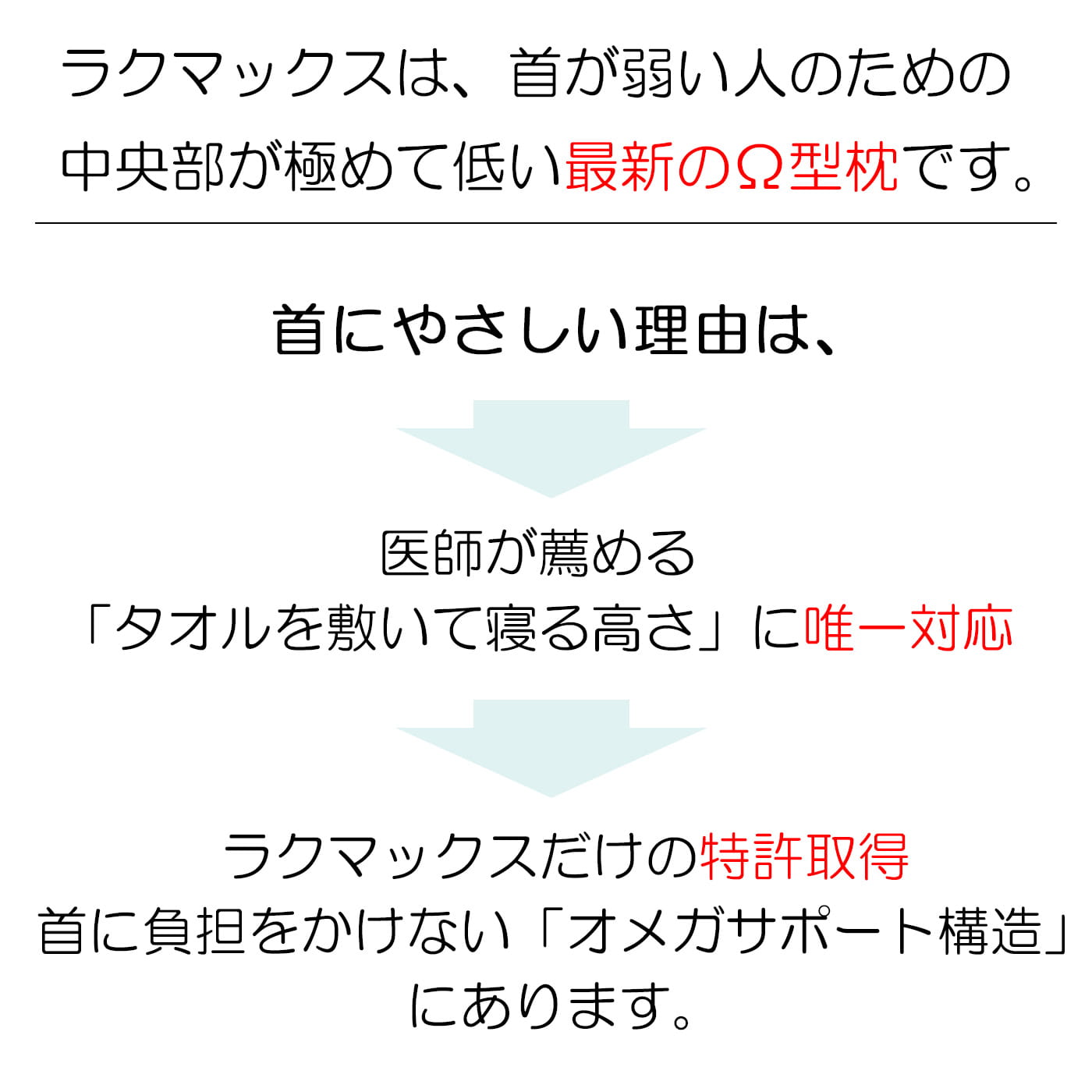 独自のΩオメガ型の形状で床と首の間をしっかり埋めながら、首への圧力を極力減らした