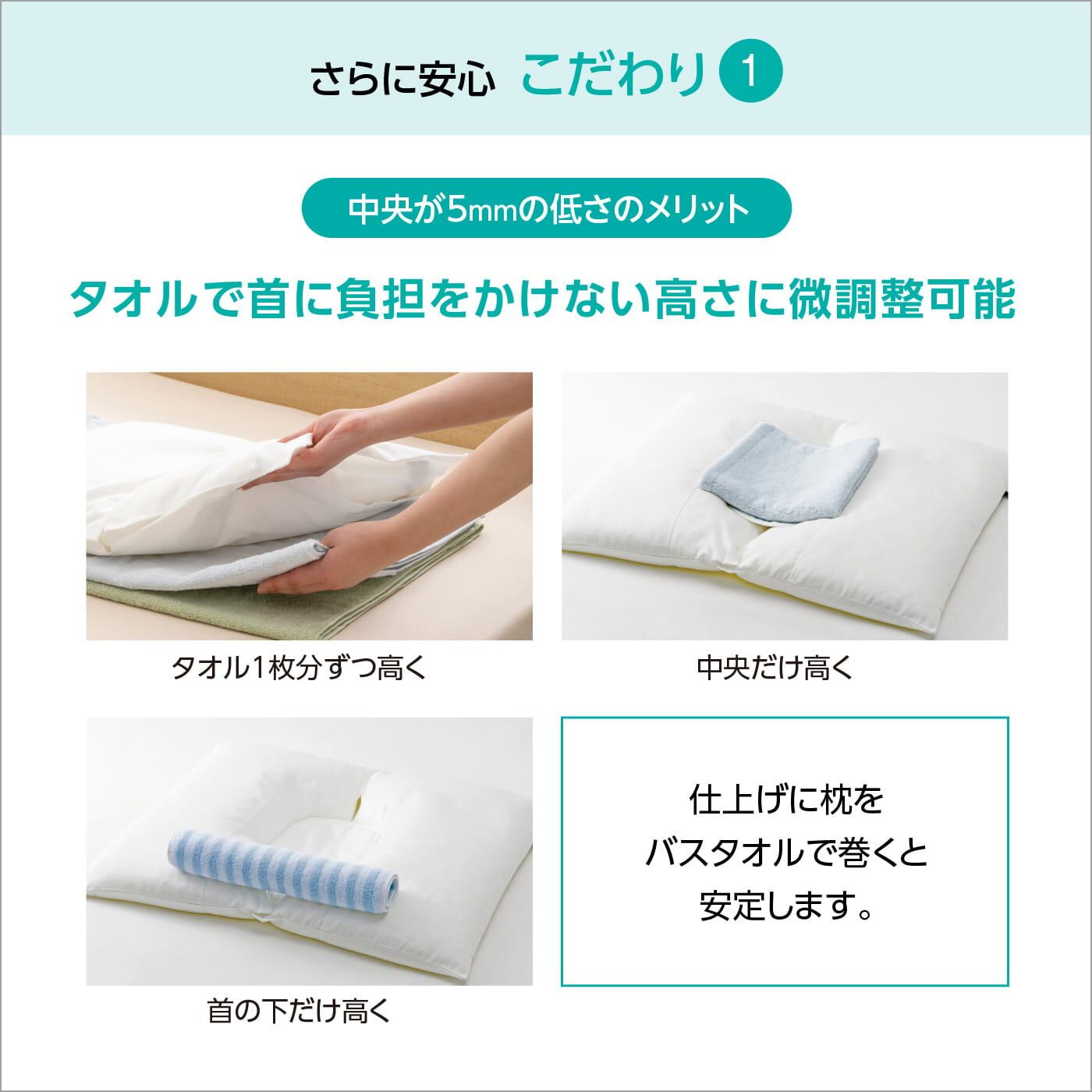 ※むちうち等で首コルセット(頚椎カラー)を装着している場合は、外して枕を使用してください。